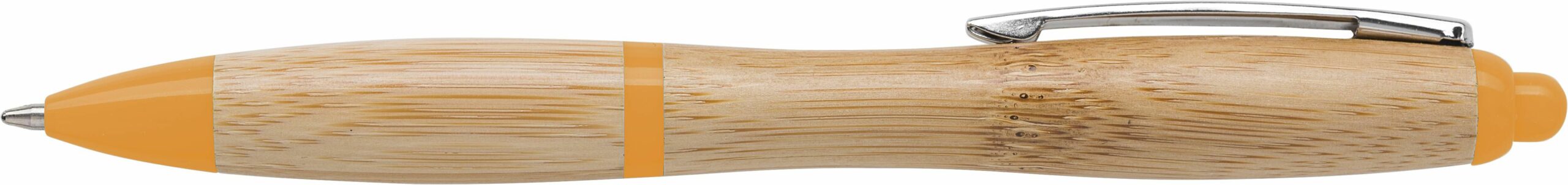 8794 | Bolígrafo de bambú con detalles de color en ABS y clip metálico. Tinta azul.