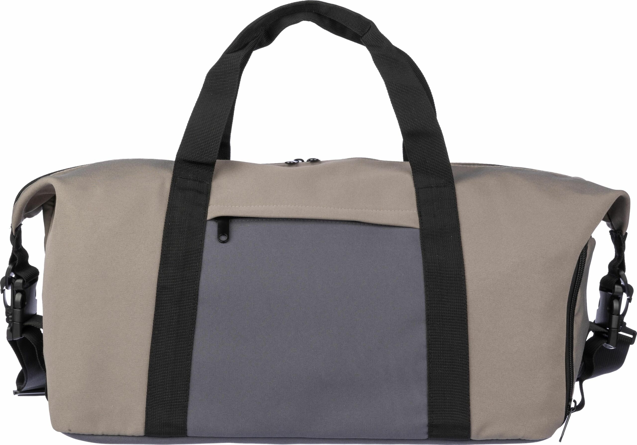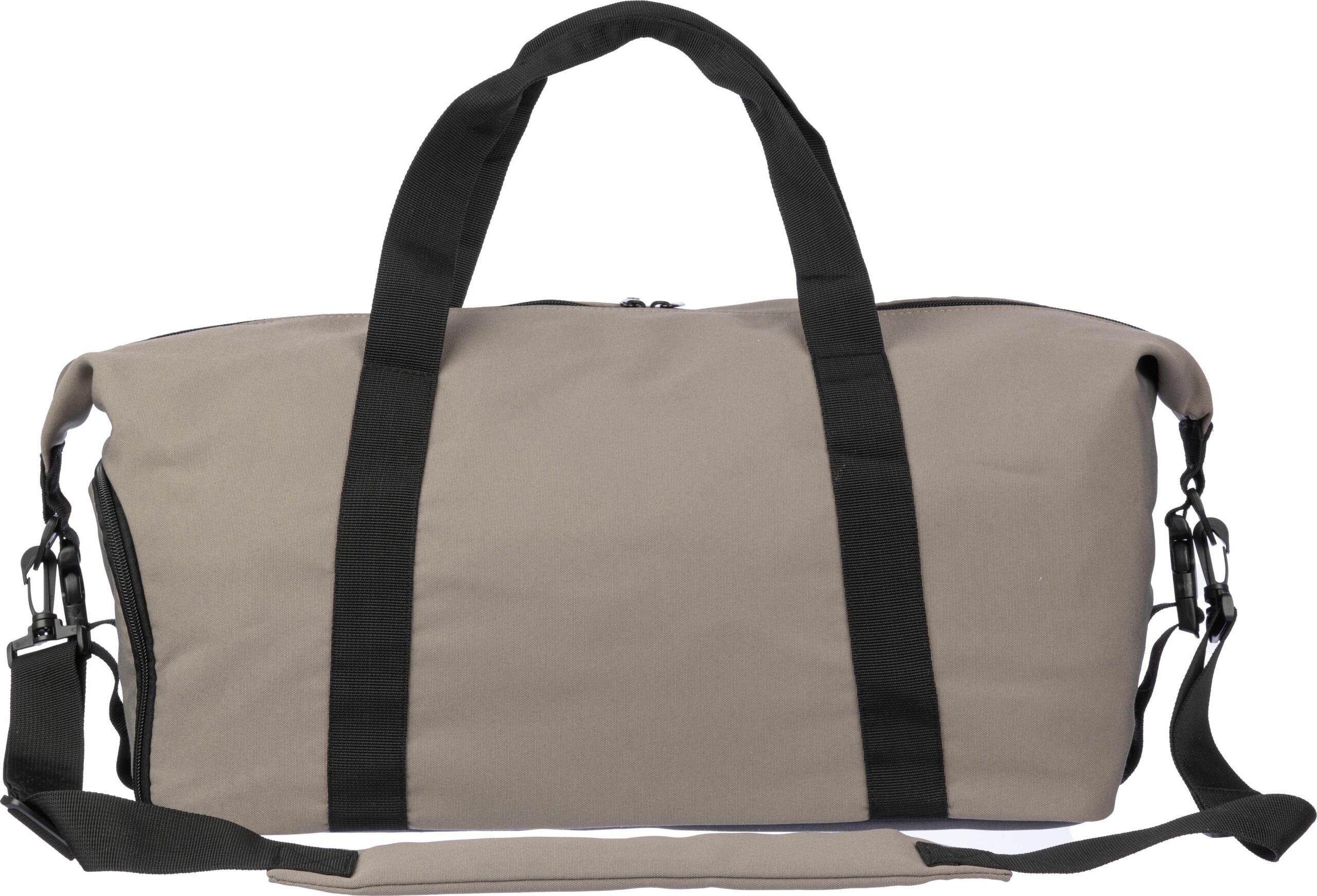 1096879 | Bolsa de lona de poliéster (600D) con forro de PU (210D) y fondo de espuma de PE (3 mm).Gran compartimento con cremallera en la parte superior y un bolsillo con cremallera en la parte delantera. Compartimento para zapatos en el lateral. Asas cortas y una gran correa de hombro acolchada ajustable.