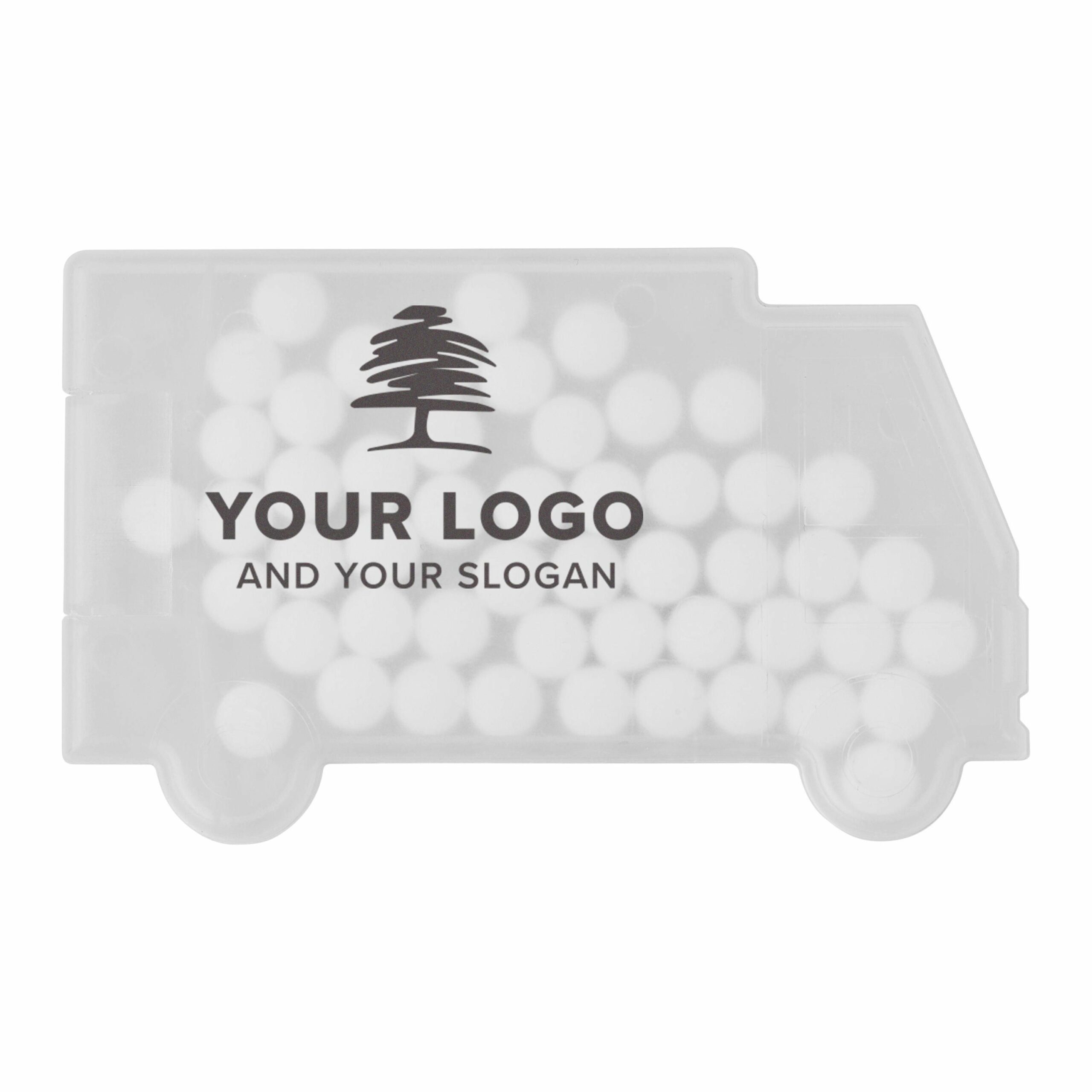 6679 | Expendedor de PP con forma de camión. Contiene aprox 5.5 gr. de pastillas de menta sin azúcar (50 uds).