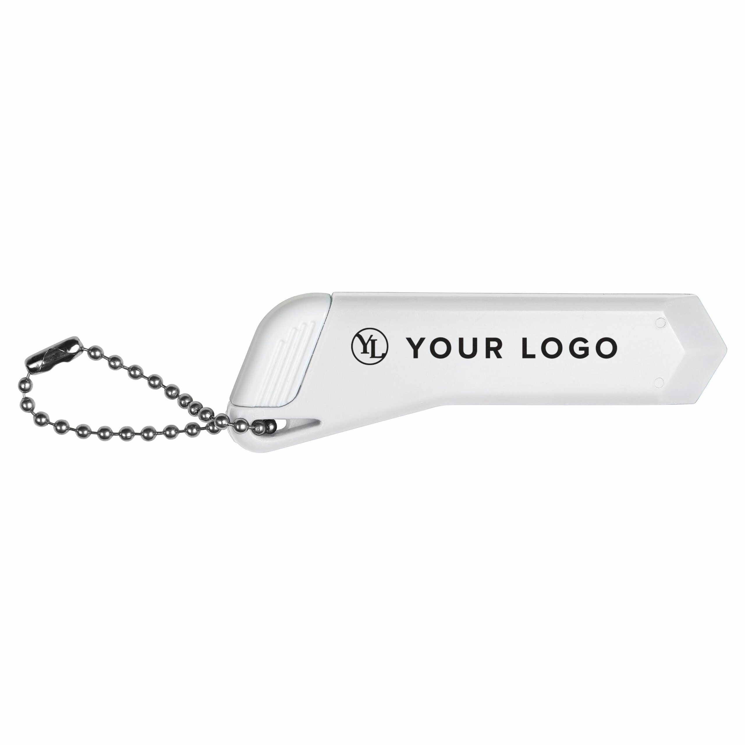 8368 | Cúter de ABS con llavero. La longitud de la hoja es de 4 cm y el ancho de 1,1 cm.