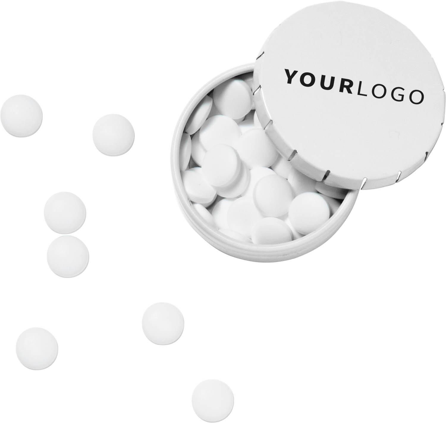 1616 | Lata con tapa clic clac. Contiene aprox. 40 pastillas de menta sin azúcar (12 gr).