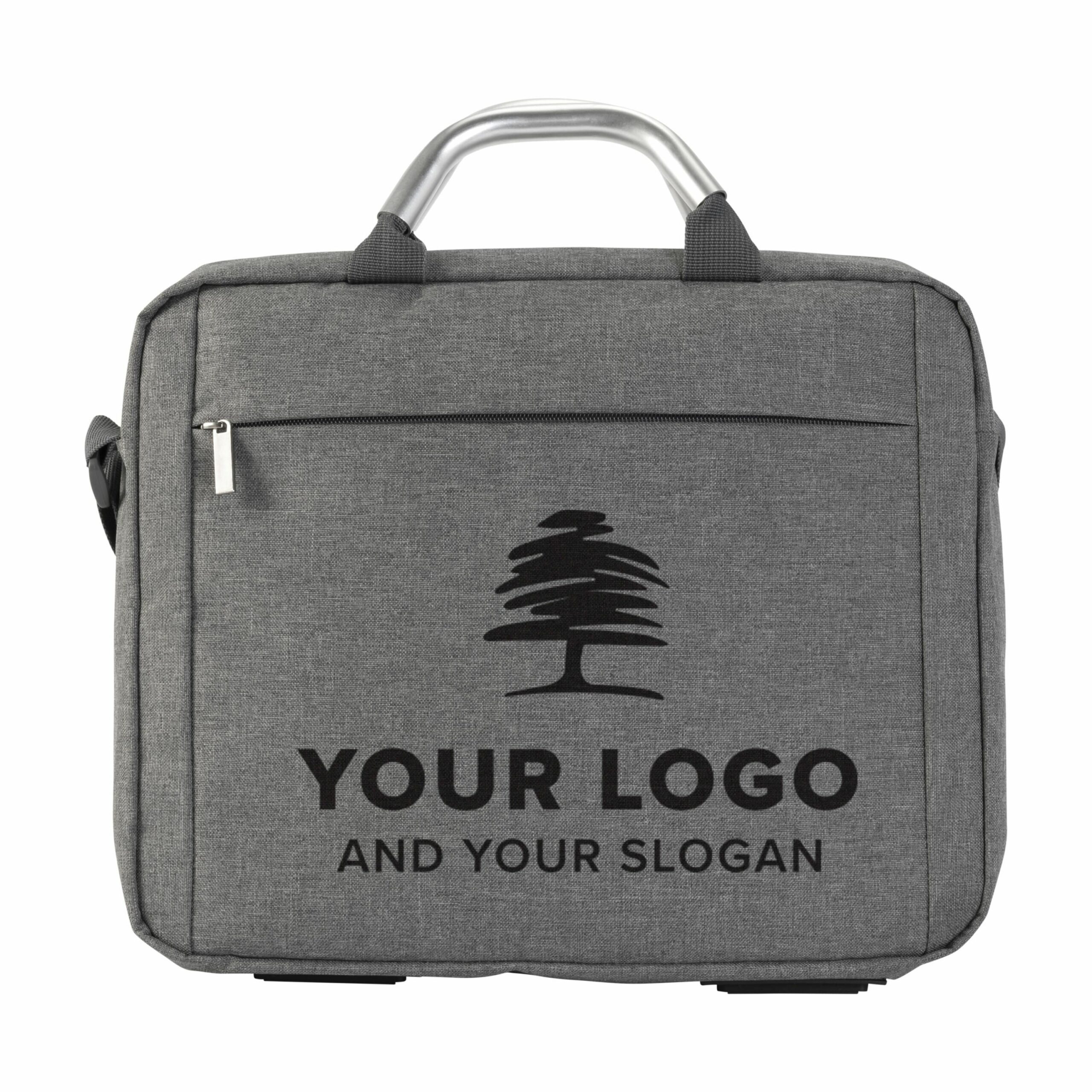 8774 | Maletín de polycanvas (600 D) para portátil de 13» con un compartimento principal dividido con un separador acolchado e incluye cuatro bolsillos. Bolsillo frontal con cremallera. Asas de aluminio y correa ajustable