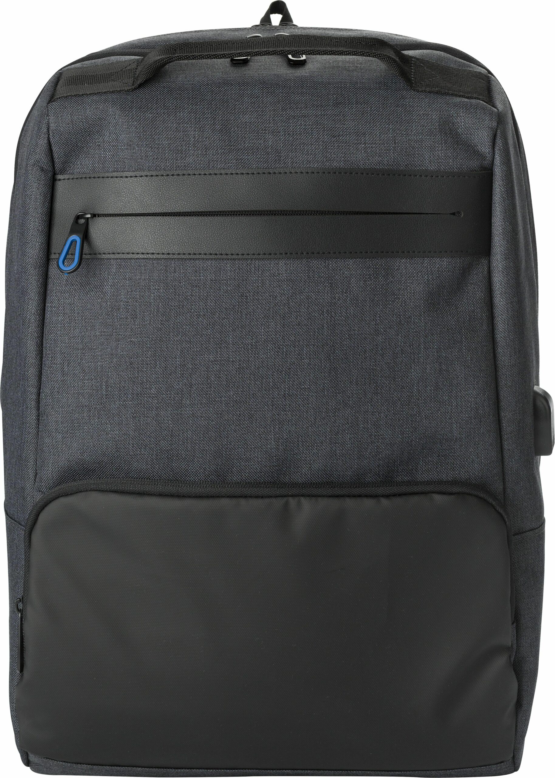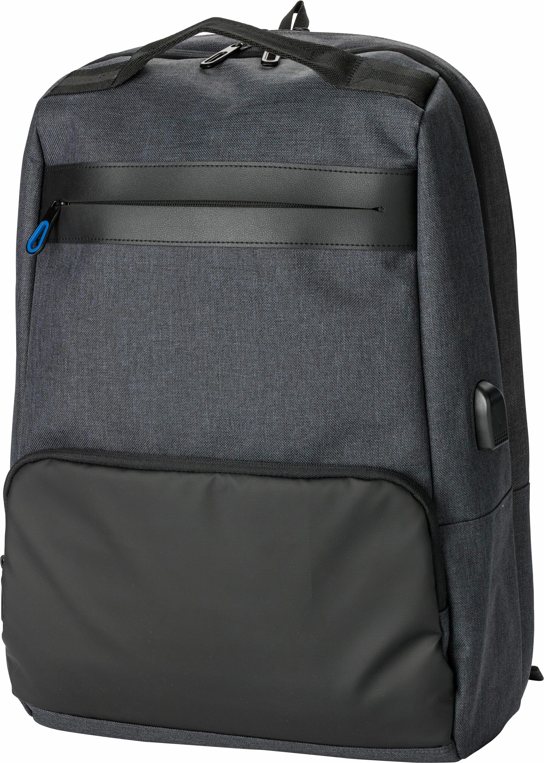 8996 | Mochila de PVC con dos compartimentos principales, uno apto para portátil de 15». Tiene un bolsillo trasero antirrobos y dos bolsillos con cremallera en la parte frontal. Con tirantes acolchados ajustables.