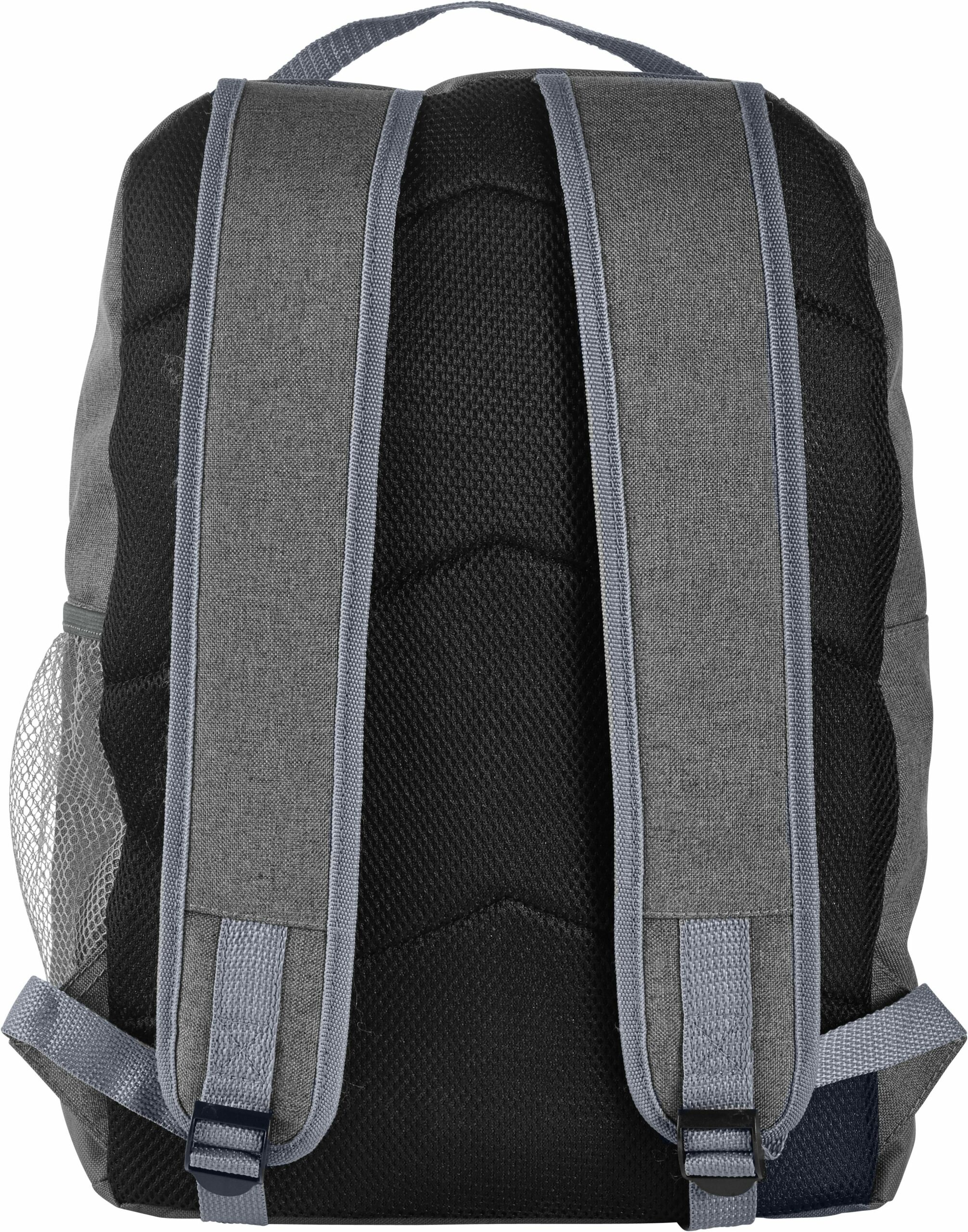 0946 | Mochila de loneta polycanvas (600 D) con un gran compartimento central con cierre de cremallera y una pequeña salida para los auriculares. Tiene un bolsillo lateral de malla.