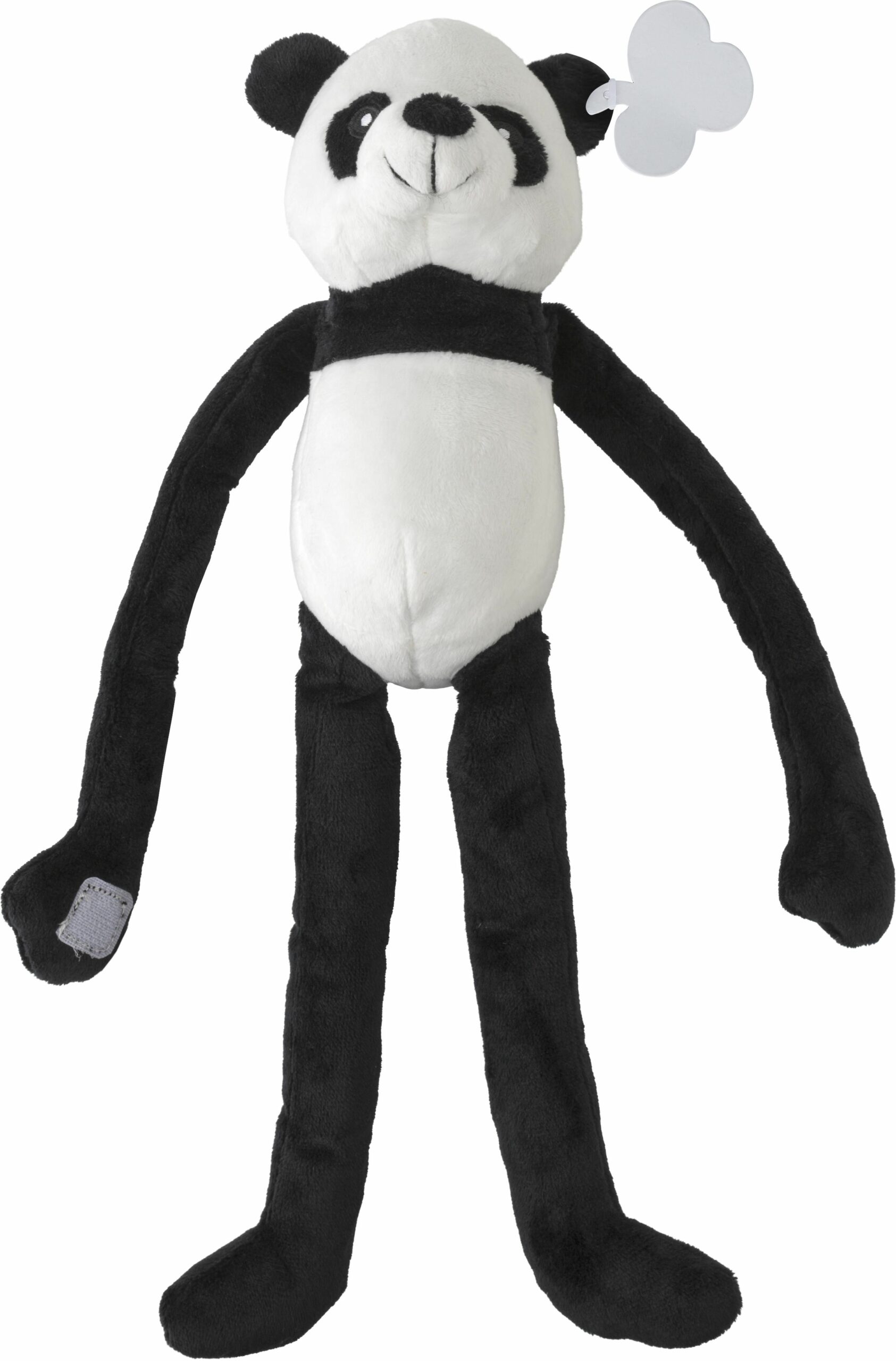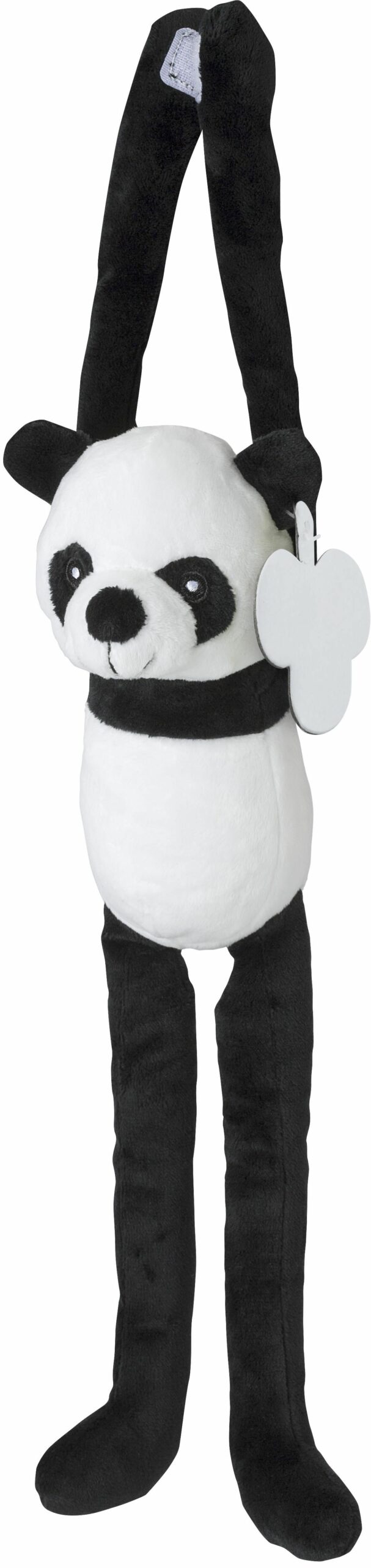 1014876 | Panda de peluche con brazos y piernas largos y velcro en las manos. Ojos bordados. Incluye una etiqueta para imprimir.
