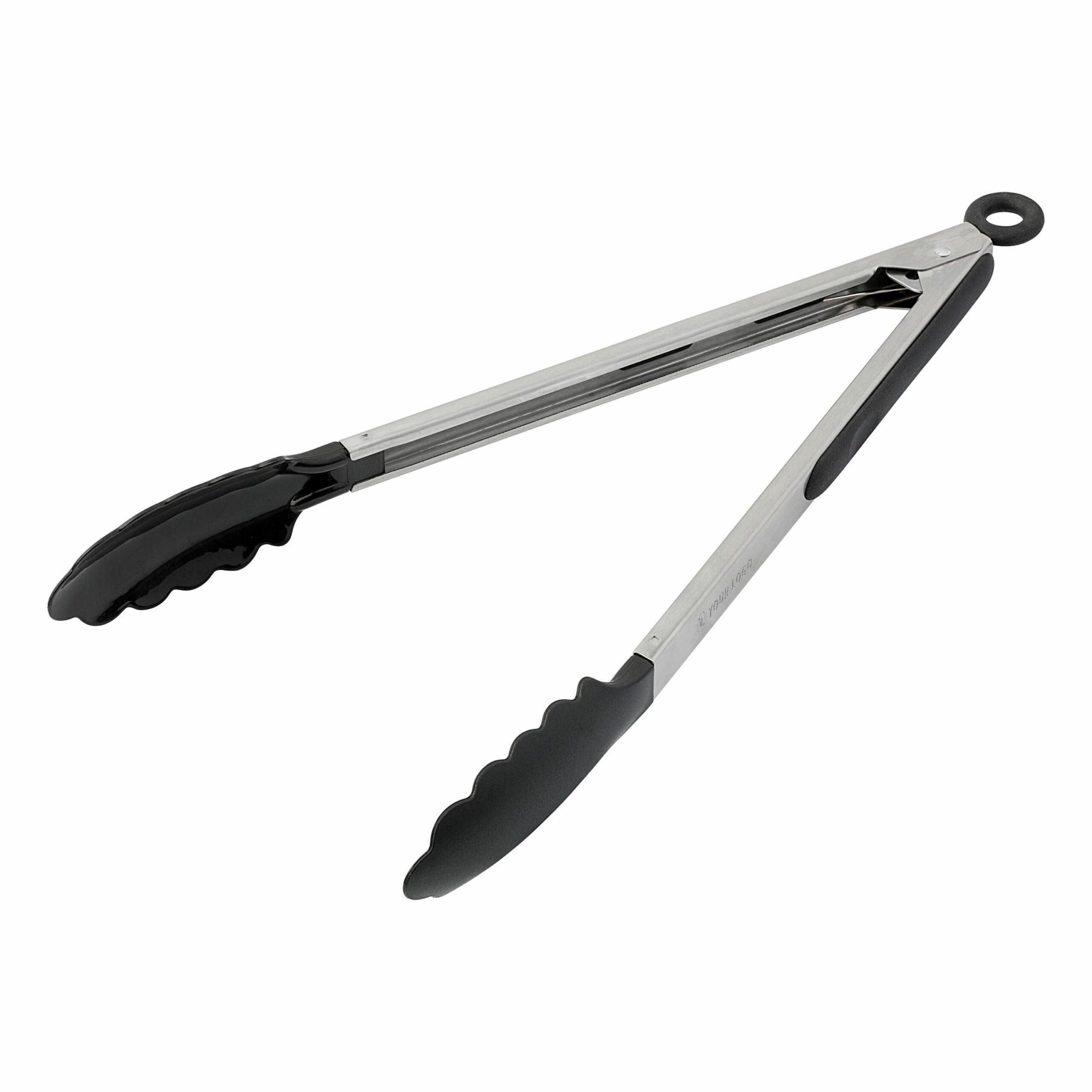 6538 | Pinzas para barbacoa, de acero inoxidable, puntas de nilón y mango de plástico. Presentado en una caja de regalo.