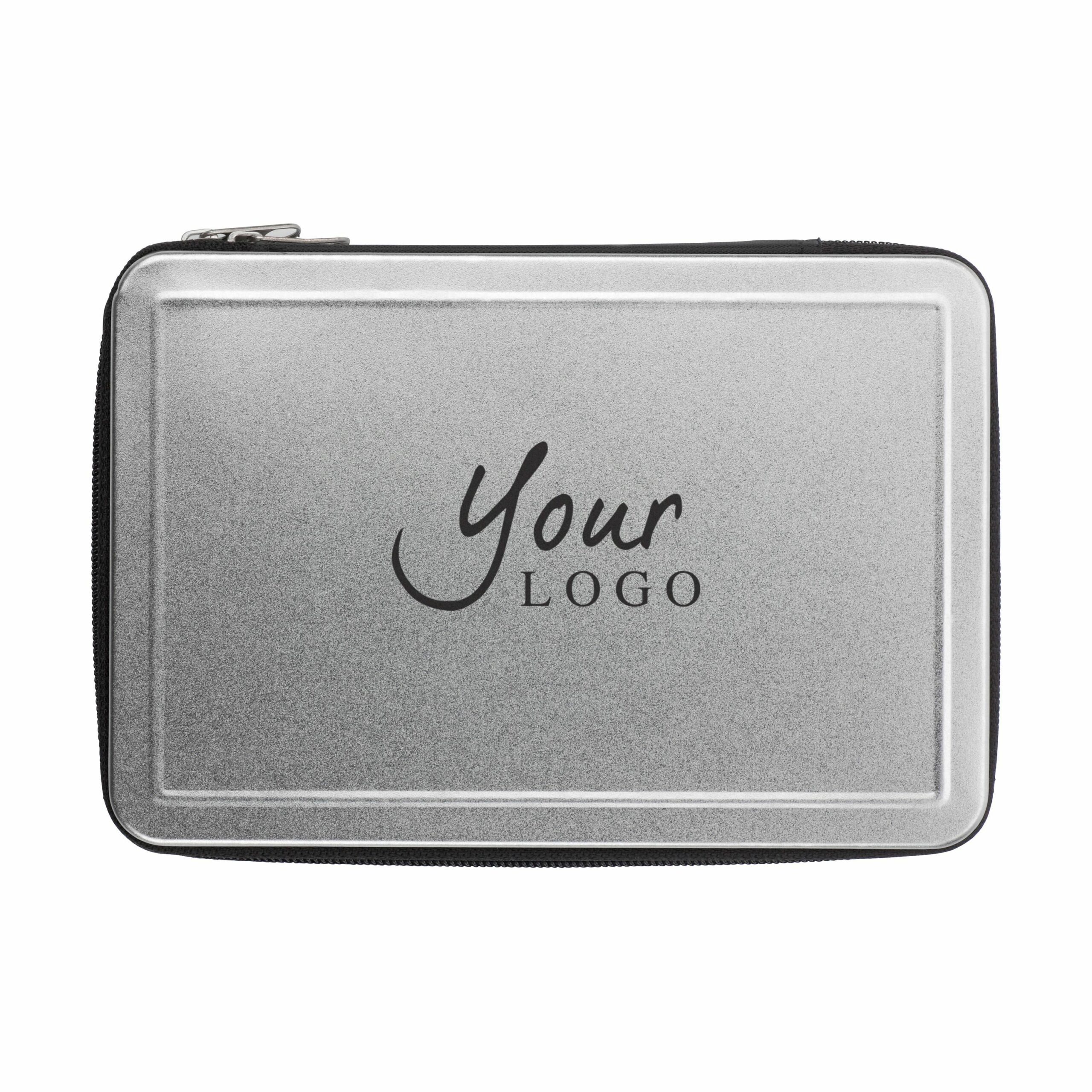 3614 | Set de 26 herramientas, presentado en una caja metálica con interior acolchado.