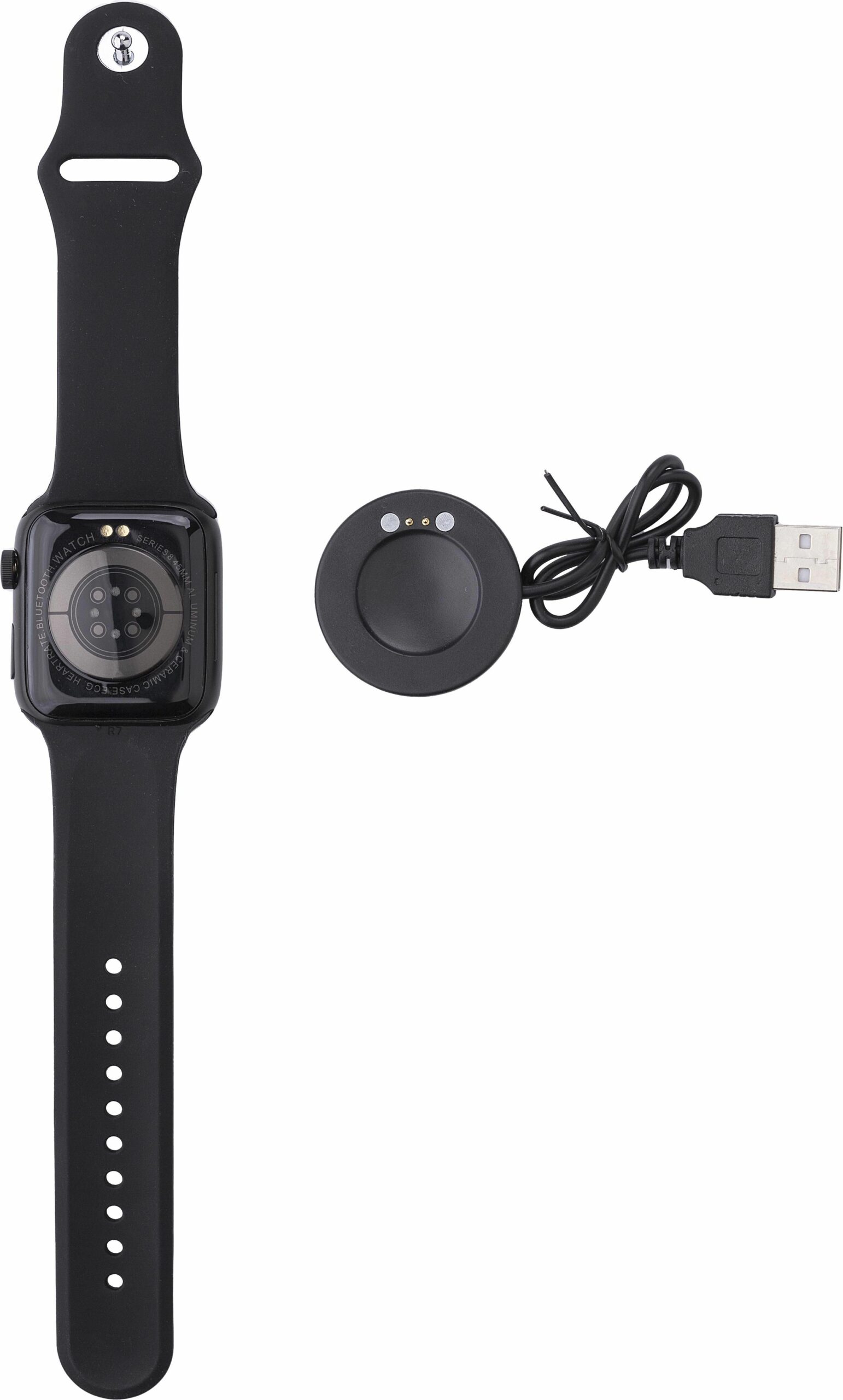 970597 | Reloj inteligente de PC y PVC con pulsera ajustable y tecnología inalámbrica. Con pantalla táctil y botón de desplazamiento en el lateral. Funciones: llamada, frecuencia cardíaca, monitor de sueño, medida de oxígeno, recordatorios de mensajes, de beber agua y de hacer ejercicio. Incluye cable USB. Presentado en una caja de cartón blanca.